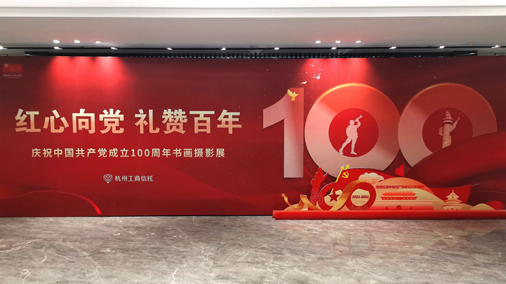 為回顧黨的百年奮斗歷程,弘揚(yáng)中華傳統(tǒng)文化,6月28日,杭州工商信托“紅心向黨 禮贊百年”慶祝中國(guó)共產(chǎn)黨成立100周年書畫攝影展開(kāi)幕。