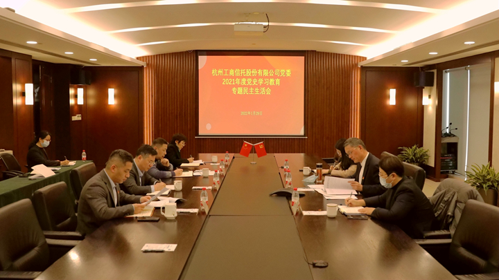 根據(jù)市紀(jì)委、市委組織部和金投集團(tuán)黨委的統(tǒng)一部署和要求,2022年1月29日下午,杭州工商信托黨委召開(kāi)黨史學(xué)習(xí)教育專(zhuān)題民主生活會(huì),認(rèn)真學(xué)習(xí)貫徹習(xí)近平總書(shū)記在中央政治局黨史學(xué)習(xí)教育專(zhuān)題民主生活會(huì)上的重要講話精神,總結(jié)成績(jī)、查擺不足,進(jìn)行黨性分析,開(kāi)展批評(píng)和自我批評(píng),探討提出整改措施。駐金投集團(tuán)紀(jì)檢監(jiān)察組副組長(zhǎng)趙志萍、集團(tuán)人力資源部相關(guān)人員到會(huì)指導(dǎo)。公司黨委書(shū)記、董事長(zhǎng)虞利明主持民主生活會(huì),黨委領(lǐng)導(dǎo)班子成員參加會(huì)議,黨群工作部相關(guān)人員列席會(huì)議。