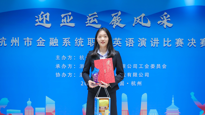 4月15日,杭州市金融系統(tǒng)“迎亞運(yùn) 展風(fēng)采”職工英語演講比賽決賽成功舉行。經(jīng)過激烈的現(xiàn)場(chǎng)比拼,杭州工商信托員工卜羽婷榮獲二等獎(jiǎng)。